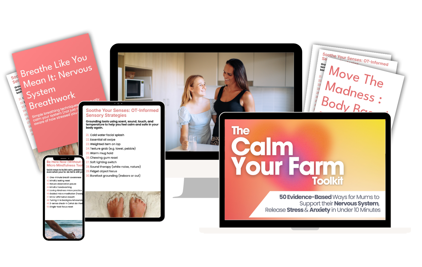 As an Occupational Therapist (and mum of 3), I know that "just relaxing" isn't an option. You need tools that work in the heat of the moment. This toolkit gives you access to my "go to" framework for managing the mental load and reducing anxiety, delivered in bite-sized pieces you can actually finish.